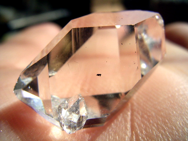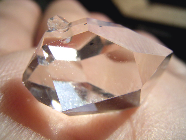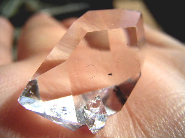画像でもおわかりのように、柱面のエッジ寄りに、3.8mmのクリア小結晶がオン。