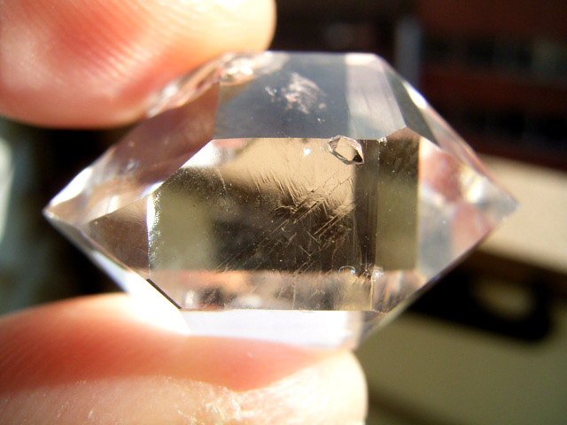 超クリアな結晶貫入以外は、横のファセット面に0.5mmほどの微細結晶が1つオン。