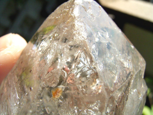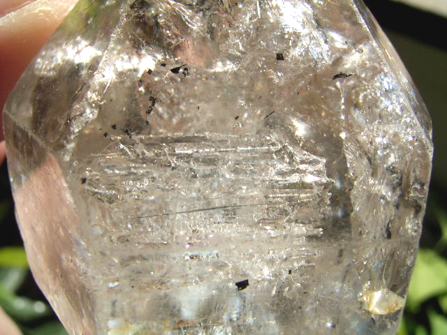 両方の(剣先から下った)ファセット面の内側にも、△気泡や気泡が山型ファントムのように形成され、重なりはそれほどありませんが、これもちゃんと「エレスチャル」の並びです。