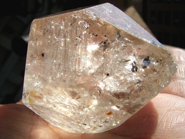 柱面の短い結晶の形、結晶内部のクリアさ・明るさ・色合い・幻影の入り方・エレスチャル気泡の並びと内包物・カーボン粒、これらニューヨーク産の疑いようのない要件(特徴)ばかりです。