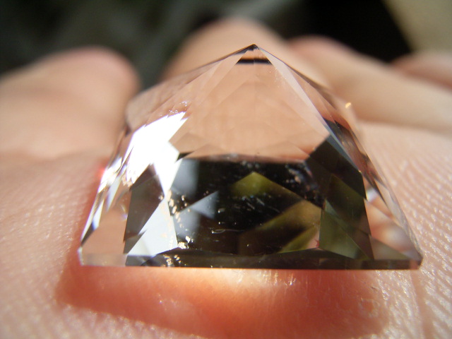 結晶の内側の面に光が集まって、プリズム効果とも相まって、虹のような反射が綺麗です。