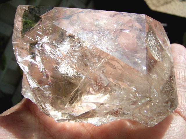 ルーペでの観察向きの、癒しのハーキマーダイヤモンド。「鑑賞に耐えうる」綺麗な結晶です。