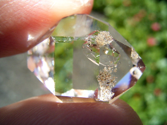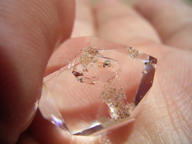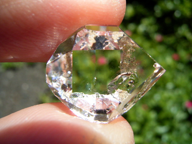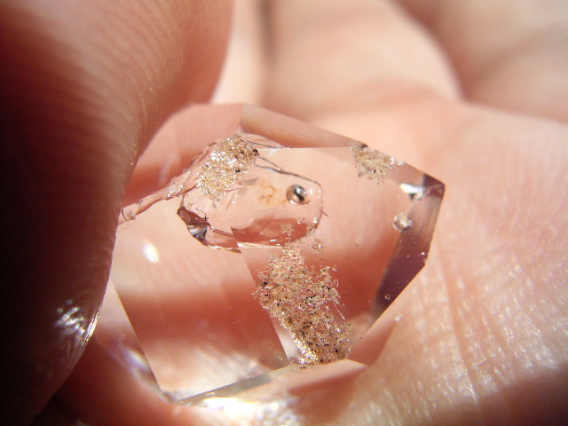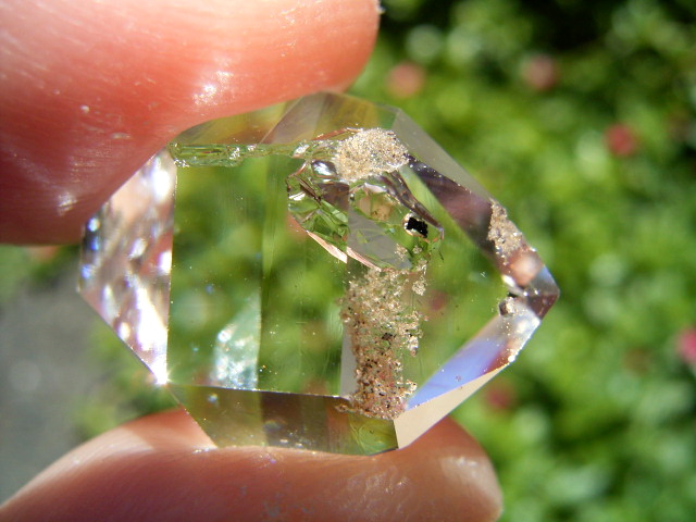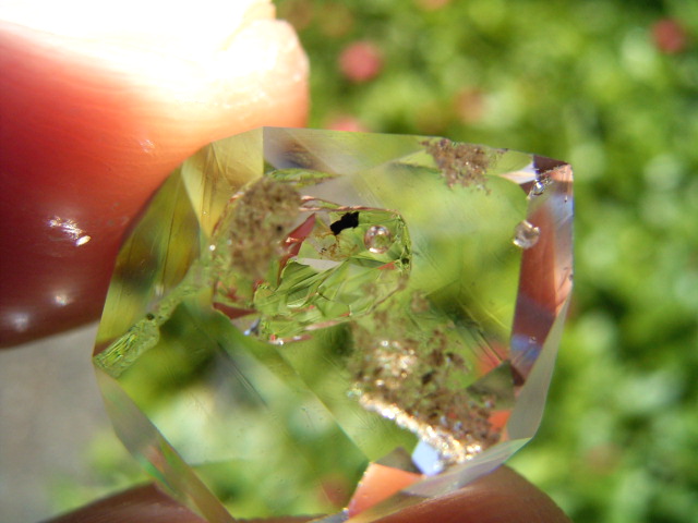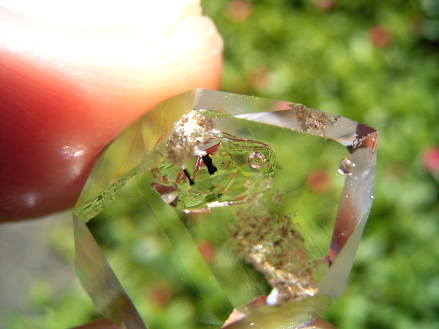 ■ その柱面とファセット面の交わるエッジの下に、5×4mmほどのだ円形の水のポケットがあって、中に0.8mmほどの気泡がカーボンを連れて遊んでいます。