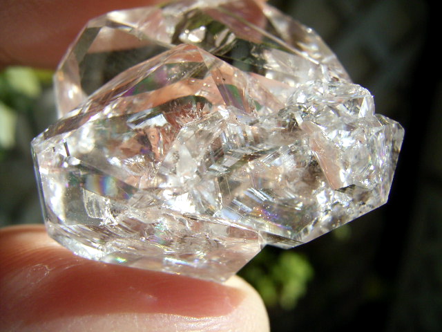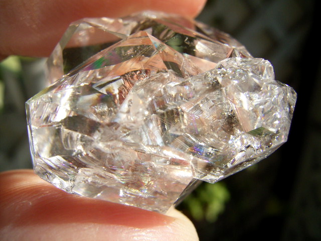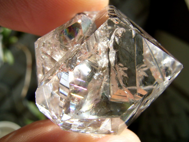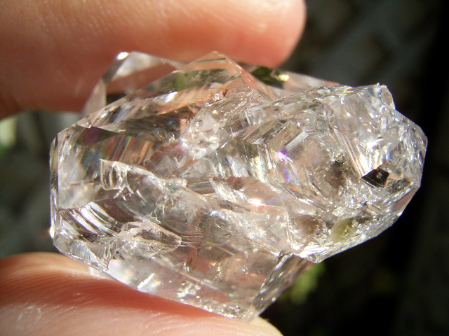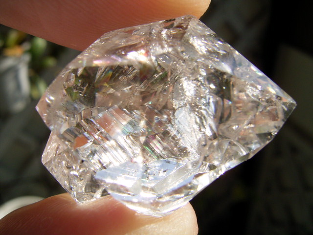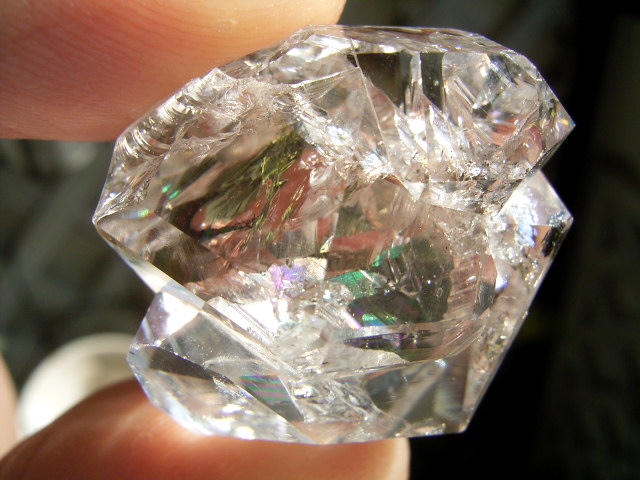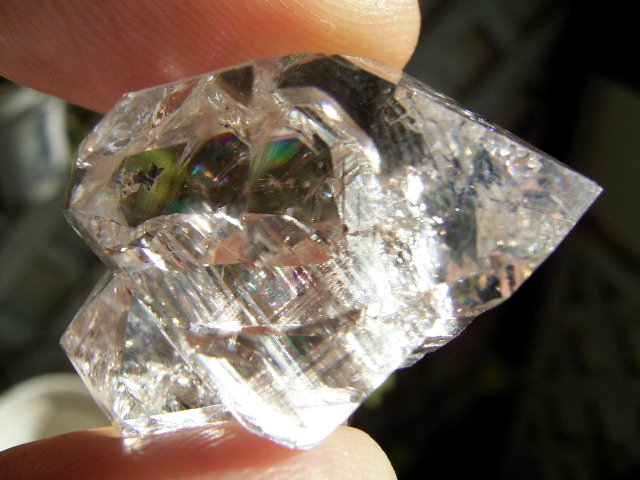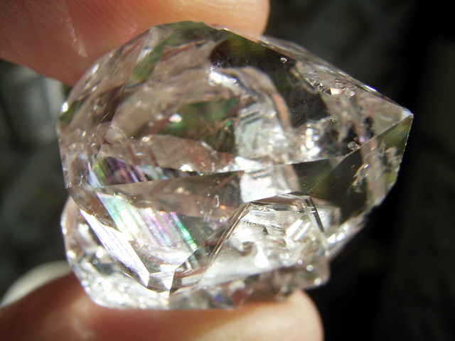 結晶の中ほどの階段状のクラスター面に、虹が綺麗に現れます。(虹の撮影がむずかしい。。)