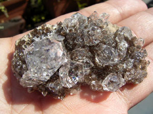 ★ドリュ・ドリューズィ:ハーキマーダイヤモンドは岩のくぼみに形成されますが、その時結晶の周りに出来る微小の結晶の群晶が『ドリュ』です。