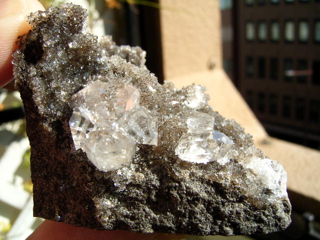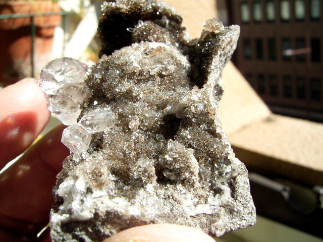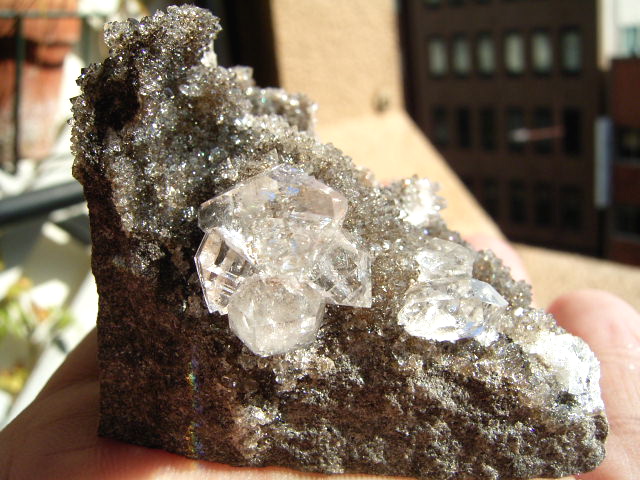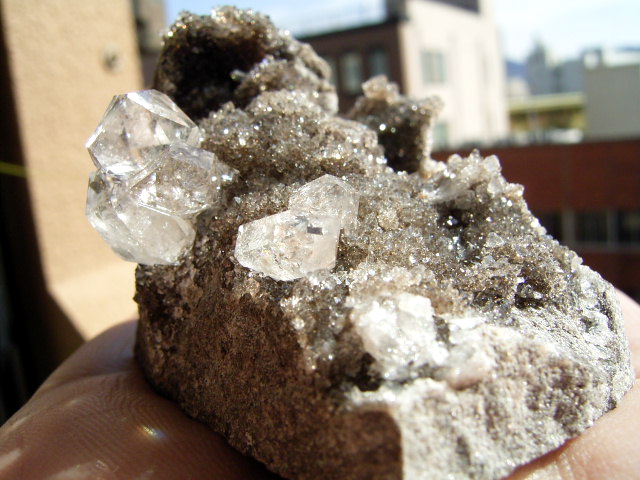 母岩の上に、無数のハーキマーの結晶がびっしり。1粒1粒が、ちゃんとハーキマーです。