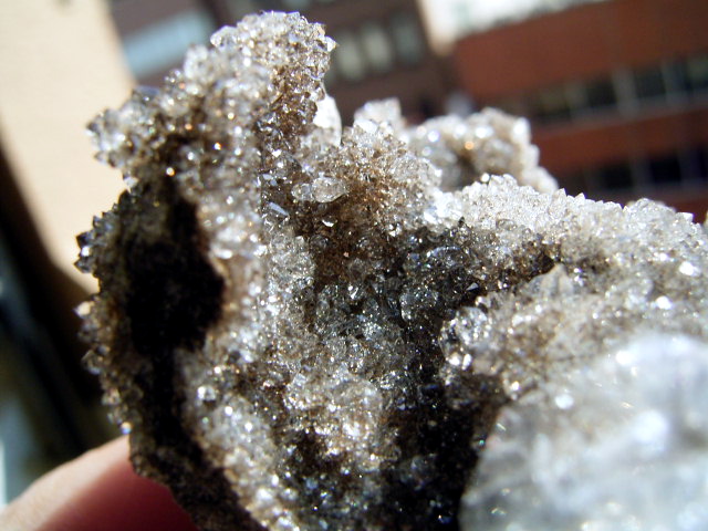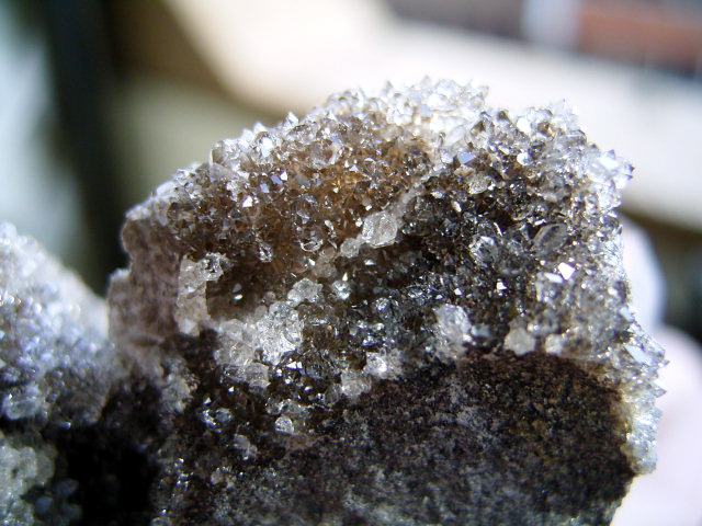 ちょうど手頃な母岩の上に、クリアドリュ群晶がびっしり。