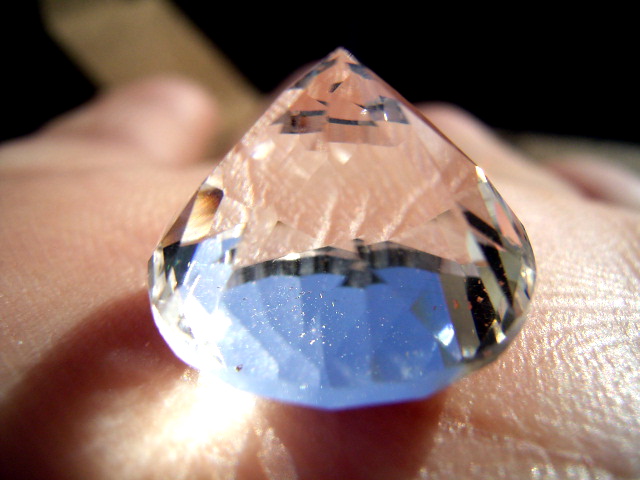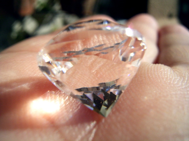 結晶の内側の面に光が集まって、プリズム効果とも相まって、虹のような反射が綺麗です。