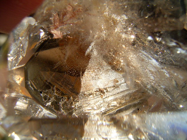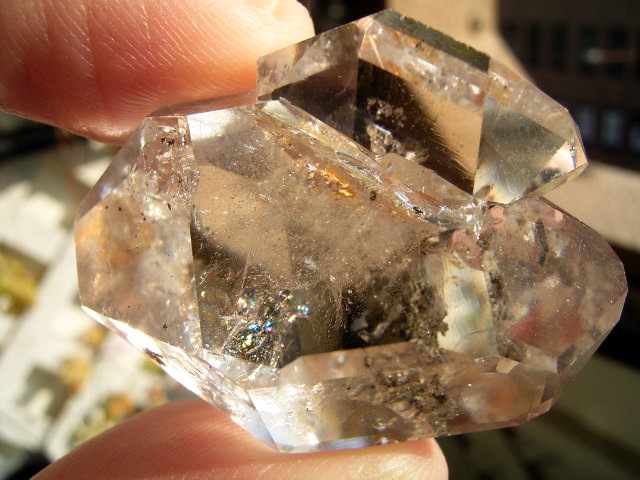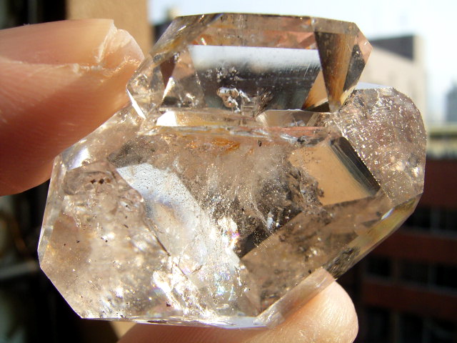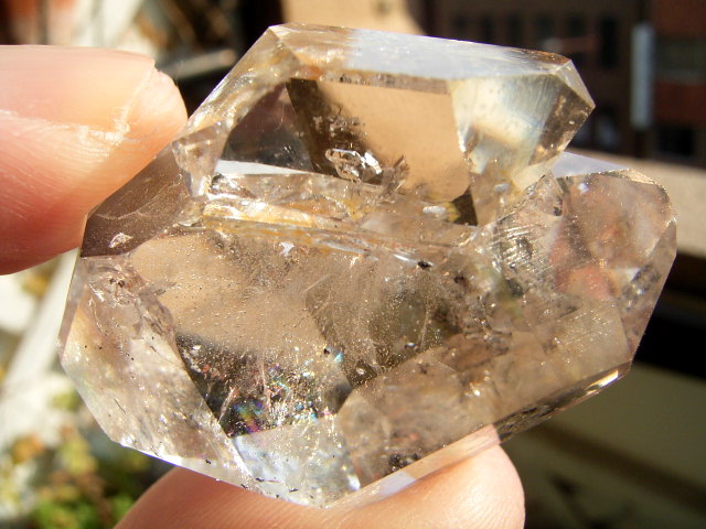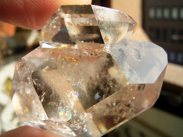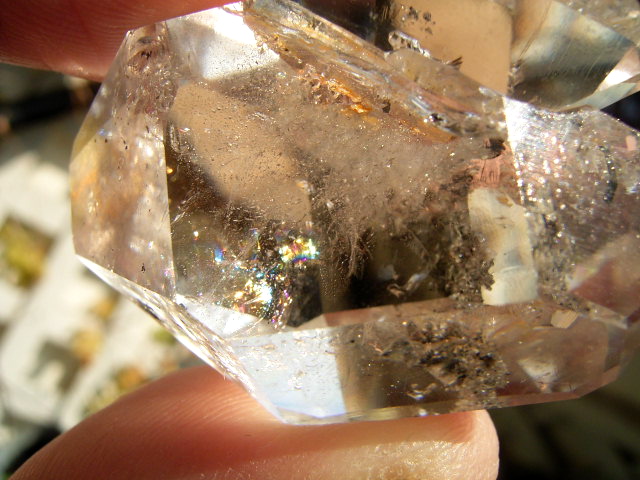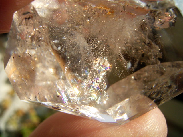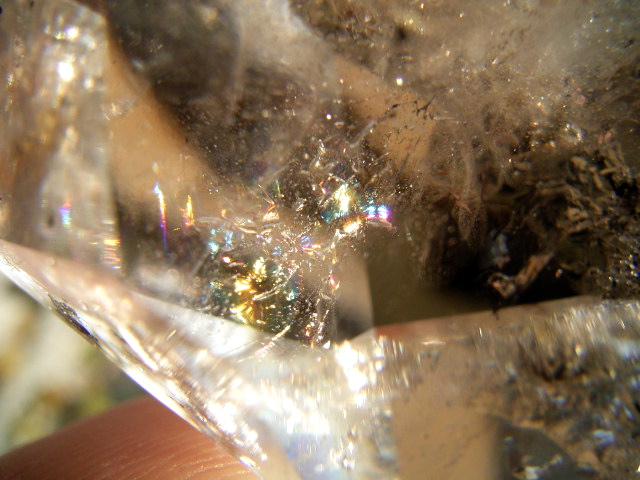 階段放射状のクラスター面に、淡いクラスターレインボーがほんのり。