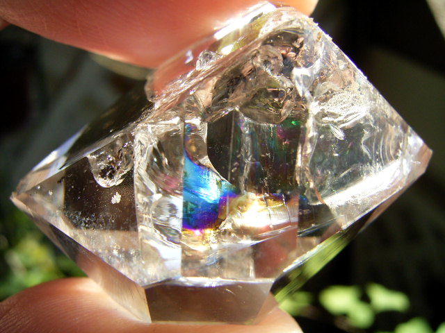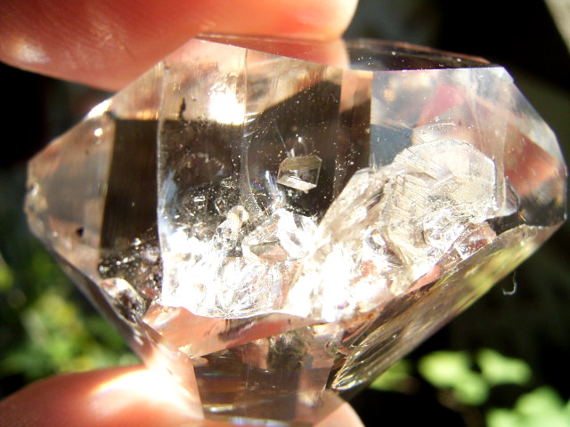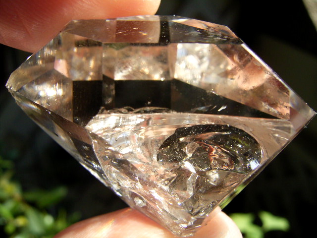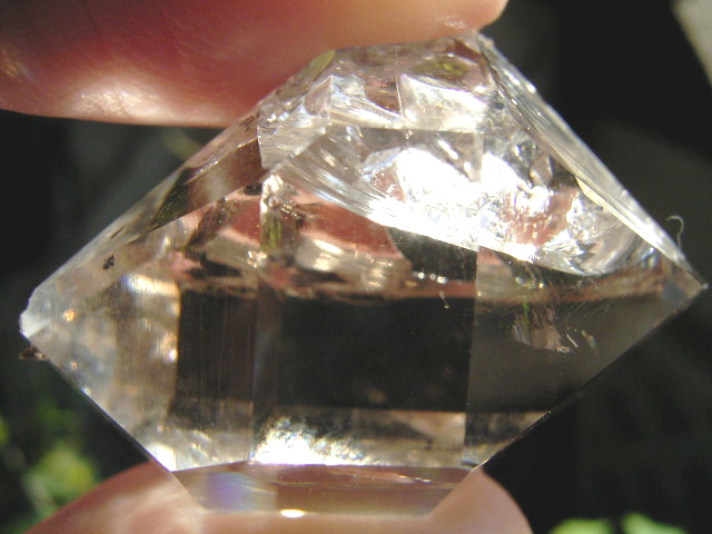 ■ ファセット面の2面の表面下に、エレスチャル気泡。※1つには、ハーキマーの土ぼこりが入っています。