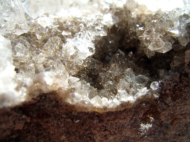 無数の小さなクリア結晶・ホワイトドリュが、母岩の上にびっしり。