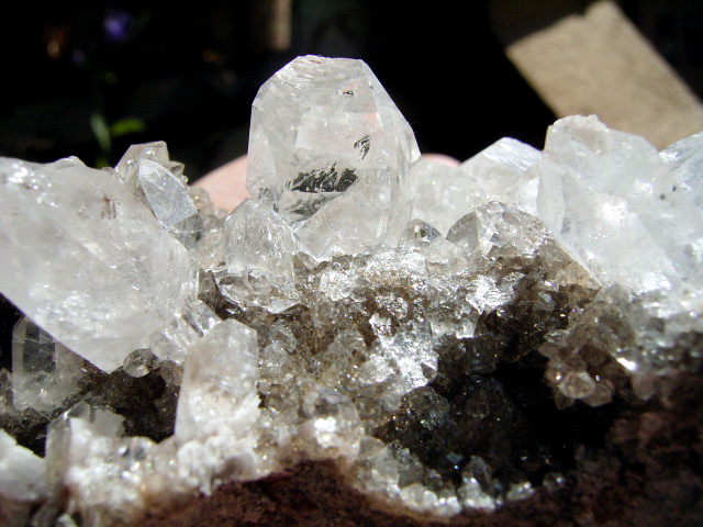 ★ドリュ・ドリューズィ:ハーキマーダイヤモンドは岩のくぼみに形成されますが、その時結晶の周りに出来る微小の結晶の群晶が『ドリュ』です。