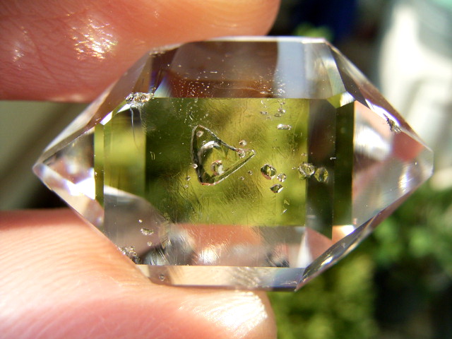 三角ポケット「水入り」と負晶銀河と淡いファントム幻影が見どころ。鑑賞向きのプレミア結晶です。