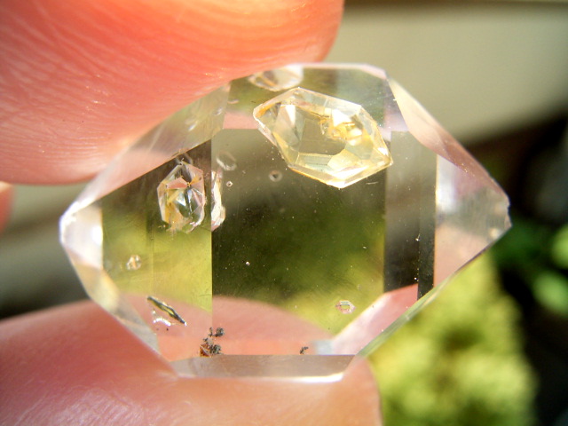 小さな「水入り」と、負晶、要件が集まっていて、パーフェクトな美しさ。まさに鑑賞向きのプレミア結晶です。
