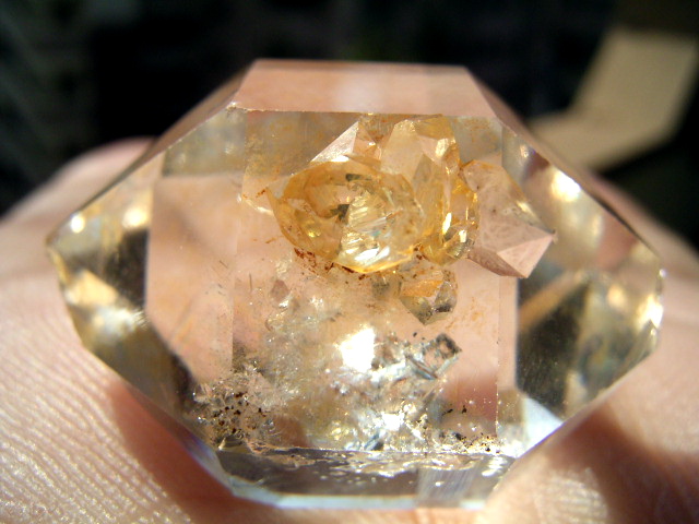 画像の通り、柱面に超クリア黄金クラスターの貫入があって、