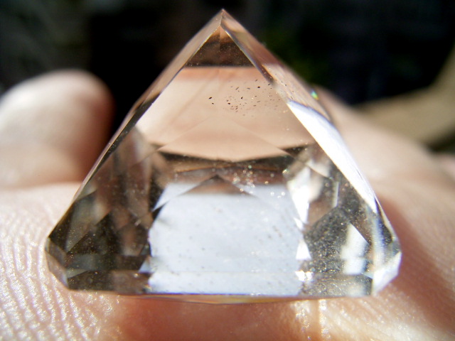 結晶の内側の面に光が集まって、プリズム効果とも相まって、虹のような反射が綺麗です。