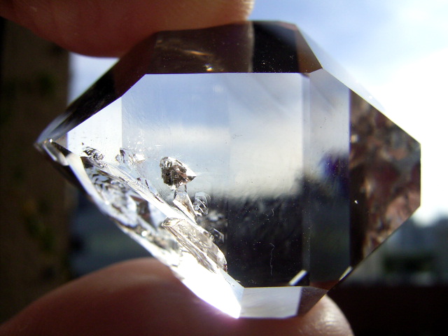 ファセット面に平行な平らな気泡なので、エレスチャルの「開いた窓」のようにも見えます。