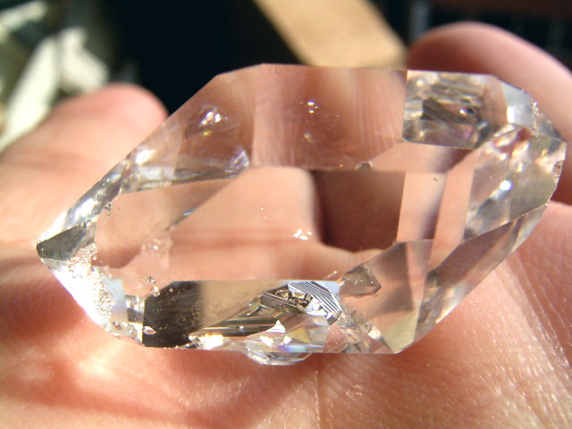 わずかに、柱面の表面下に小さな負晶。ルーペで、極微細の負晶と極微細の銀河が微々。