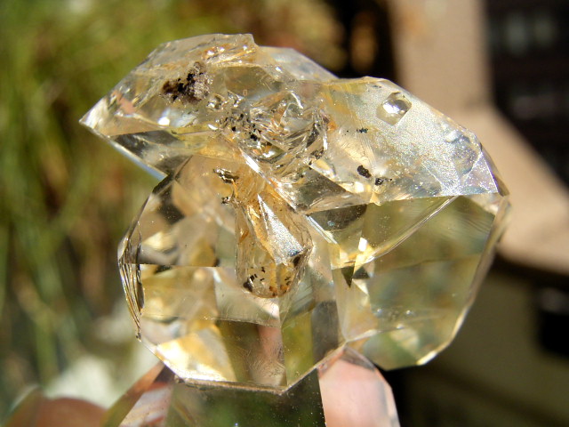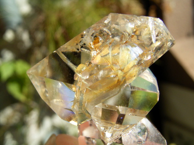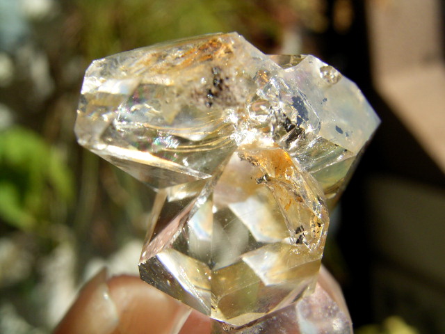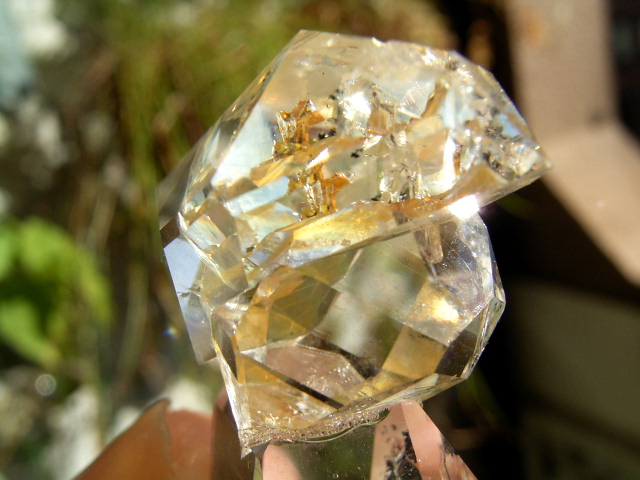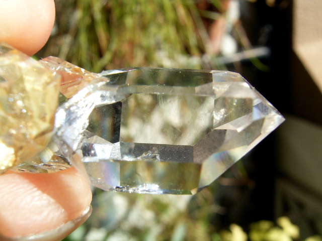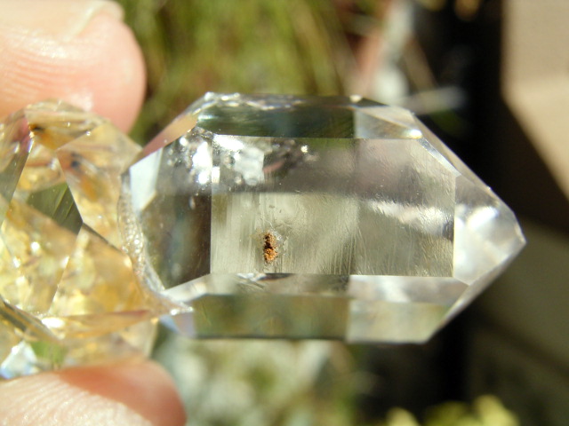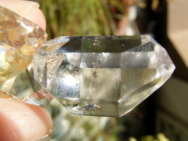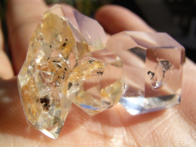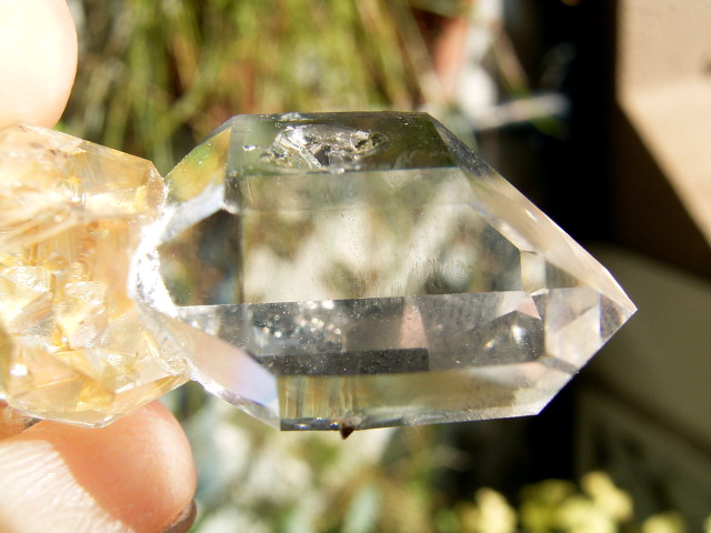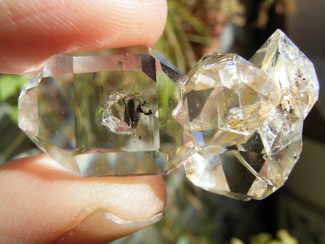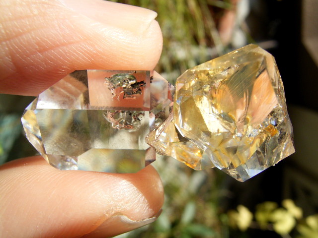 ハーキマーらしい3連結、片や無色透明、片や淡いゴールドで、クリアさ加減はハンパではありません。