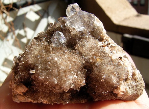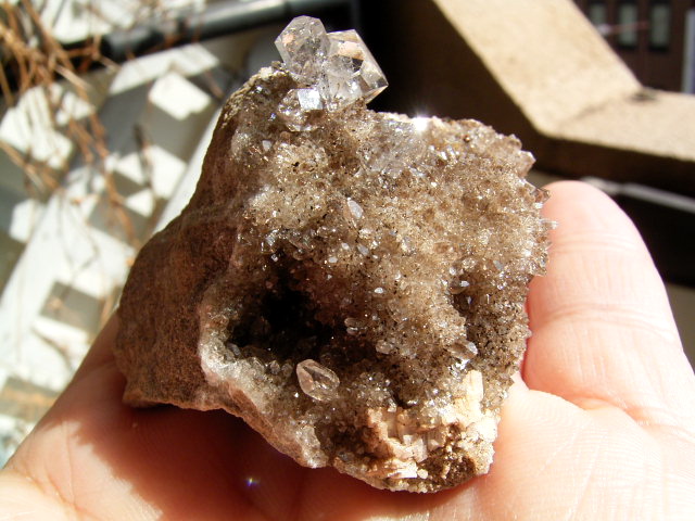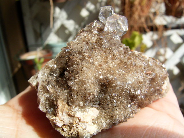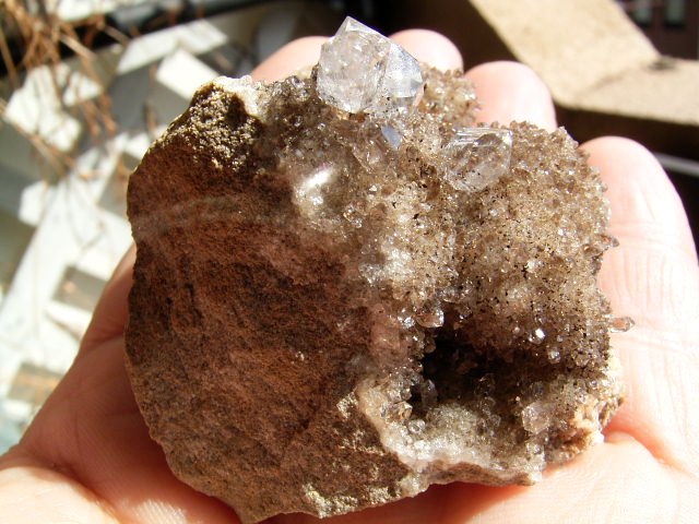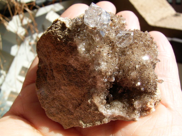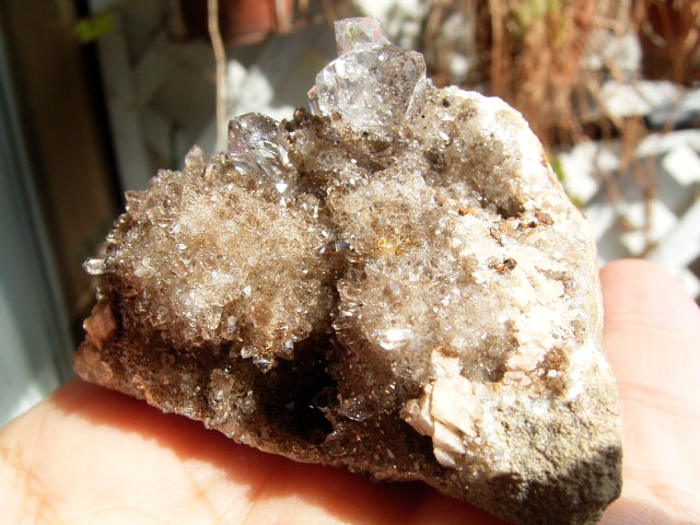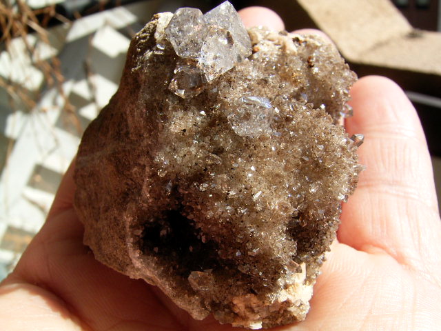 未洗浄ならではの、ドリュの標本らしい天然のままの状態で、現地ハーキマーの母岩特有の甘い匂いがしています。