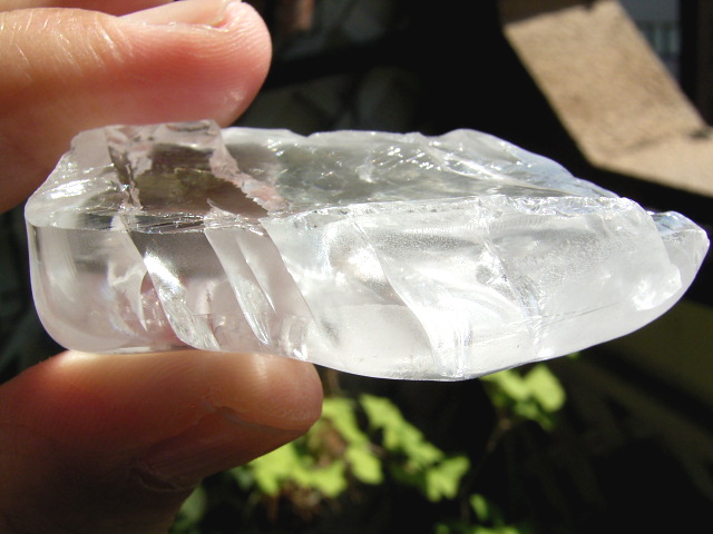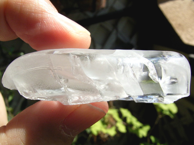 結晶はタテに割れていますが、斜めに面クラックの鏡面ヴェールが入っています。