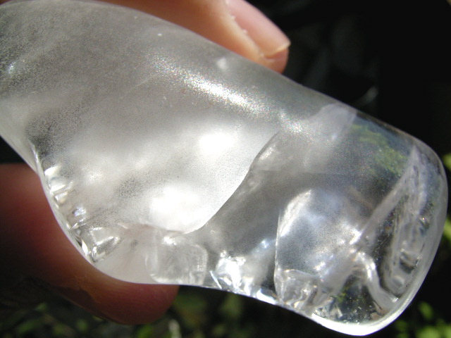 比重も違うし、偏光フィルターで見てもよくわかりませんが、鉛ガラスのようにも思えません。