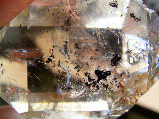その横のファセット面エッジに、2つ、淡い波紋と干渉が微々。鉄分で、ゴールドに染まっています。