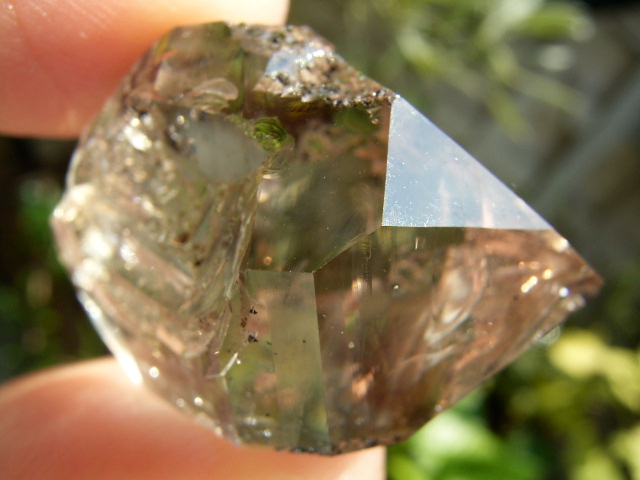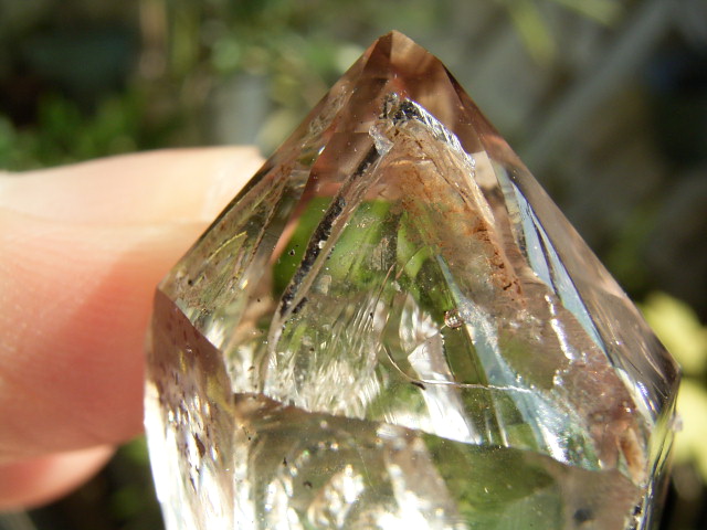 結晶全体を太陽光の下で、淡いはちみつゴールドに染めている「黄金幻影のファントムスモークヴェール」。