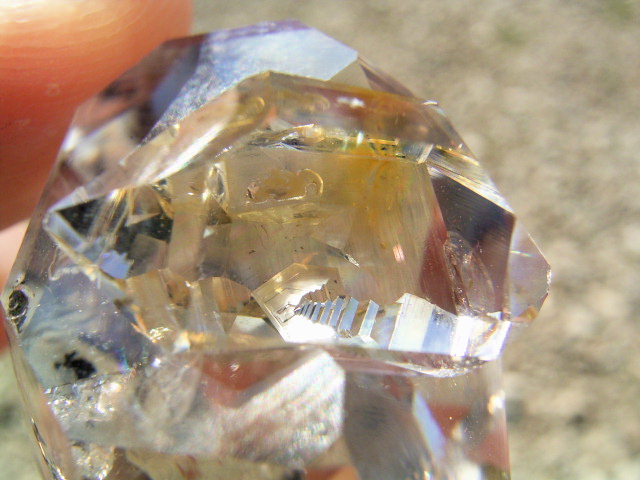 とがった方の結晶横のファセット面エッジに、淡いレリーフゲートウェイ。※彫刻された像のようなレリーフです。