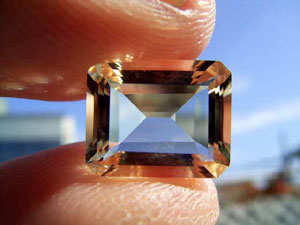 シャンパンゴールド・黄金スモークに染まった、極レアなエメラルドカット。