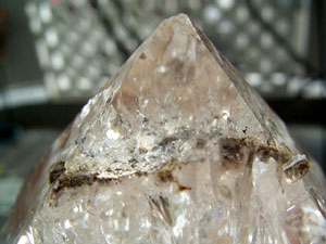 永い成長期間を経て形成される為、内部に幾層にも重なる結晶と空洞(気泡)で出来た先端を持つ水晶です。