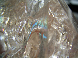 結晶の奥から奥から、湧き出ているようなエレスチャル気泡の連なりとクラック。