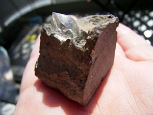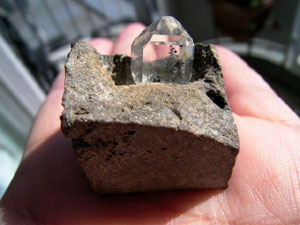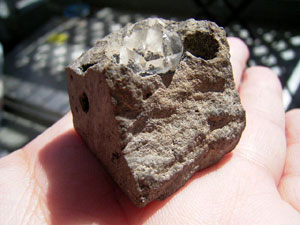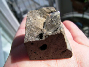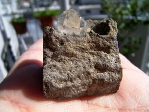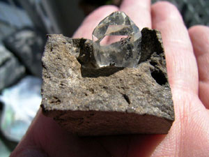 中央のくぼみに鎮座している結晶は、14mmほどのクリアな単結晶。