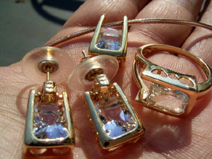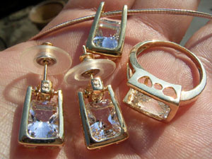 ルース加工をしているMattさんの友人(ジュエリー作家さん)から譲って頂いた、ハーキマーのルースを使った新品・未使用の「14K無垢のジュエリー3点セット」です。