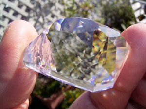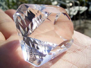 結晶の内側の面に光が集まって、プリズム効果とも相まって、虹のような反射が綺麗です。