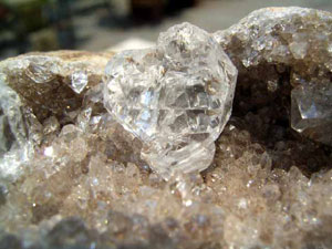 ★ドリュ・ドリューズィ:ハーキマーダイヤモンドは岩のくぼみに形成されますが、その時結晶の周りに出来る微小の結晶の群晶が『ドリュ』です。
