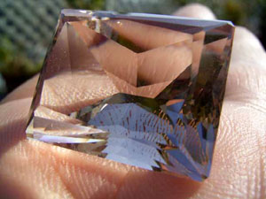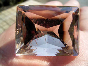 このカットは、通常、長型のプリンセスカットかエメラルドカットに似た印象があるのですが…これは角を落として、ルース自体をより大きく見せています。