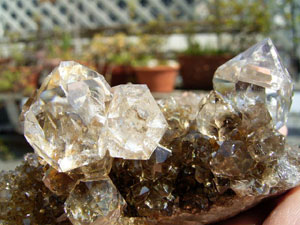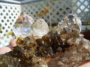 ★ドリュ・ドリューズィ:ハーキマーダイヤモンドは岩のくぼみに形成されますが、その時結晶の周りに出来る微小の結晶の群晶が『ドリュ』です。