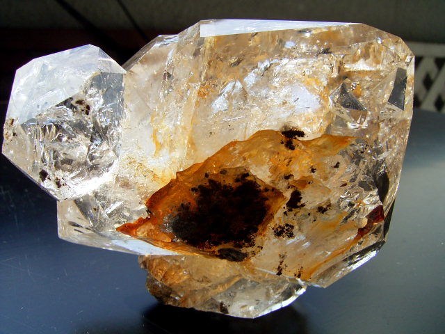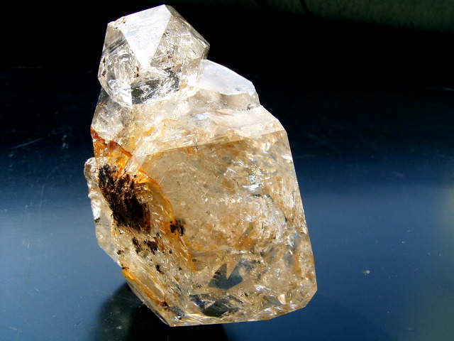 エレスチャルの気泡に母岩の鉄分が入り込んで、結晶全体を染めています。