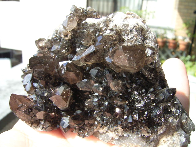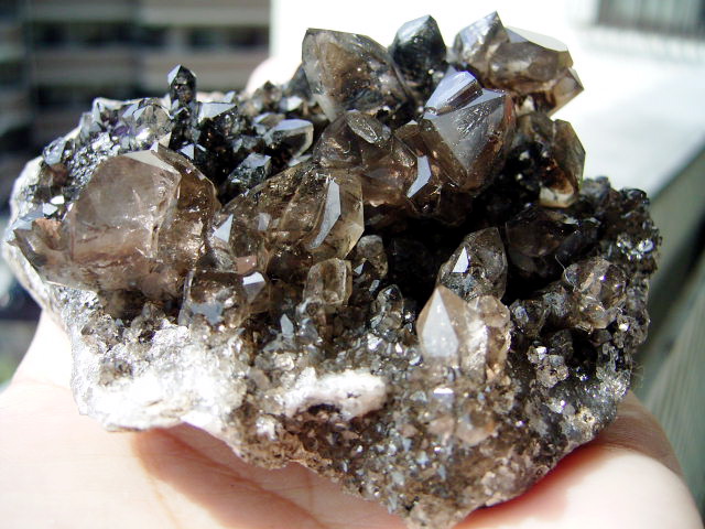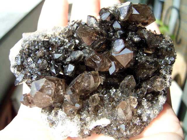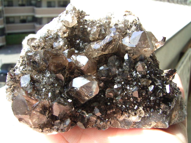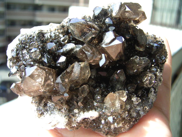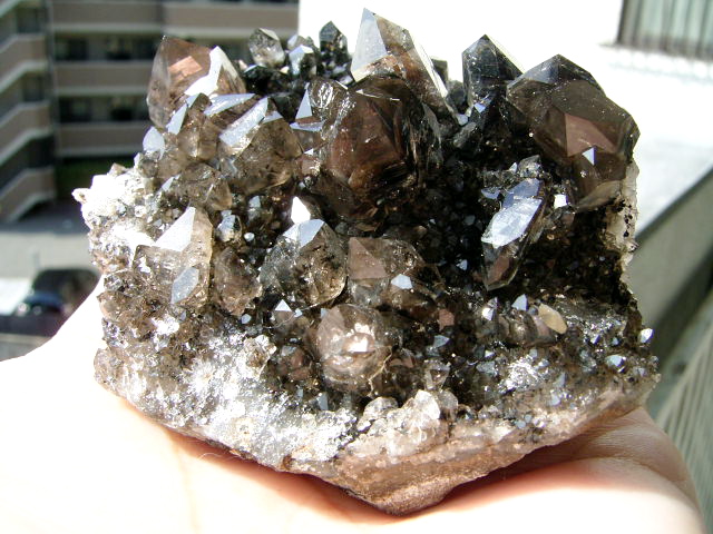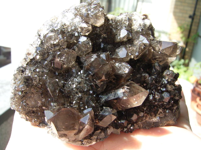 「ダークファントム」「ブラックファントム」の結晶、大きめ・無数のハーキマーの結晶が、びっしり立体的に集まっています。