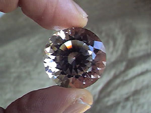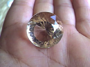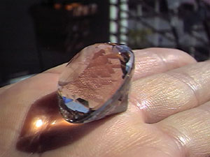 スモークでは、これほど大きな逸品は現地でも極めて希少な存在で、絶対的に数がありません。 普段はヴェールの存在がわかりにくく、綺麗な薄茶色に染まっておりますが、水の中に入れると(キャッツアイのように)中央付近に、たてにスモークが入っている事が