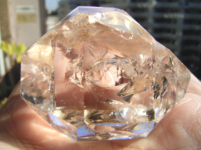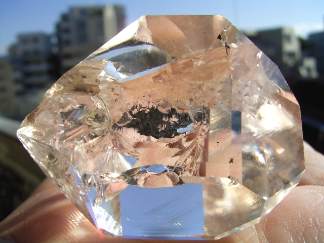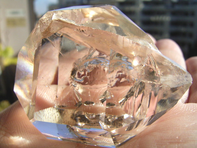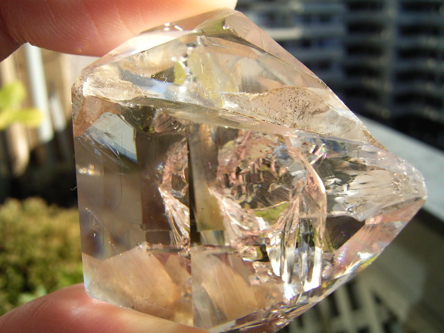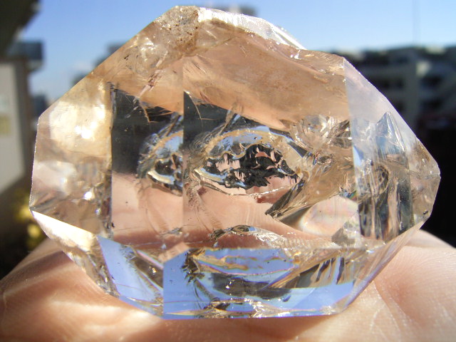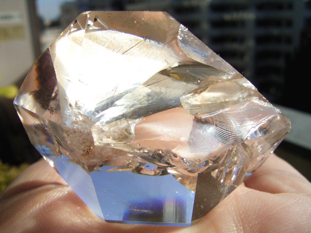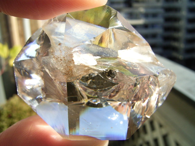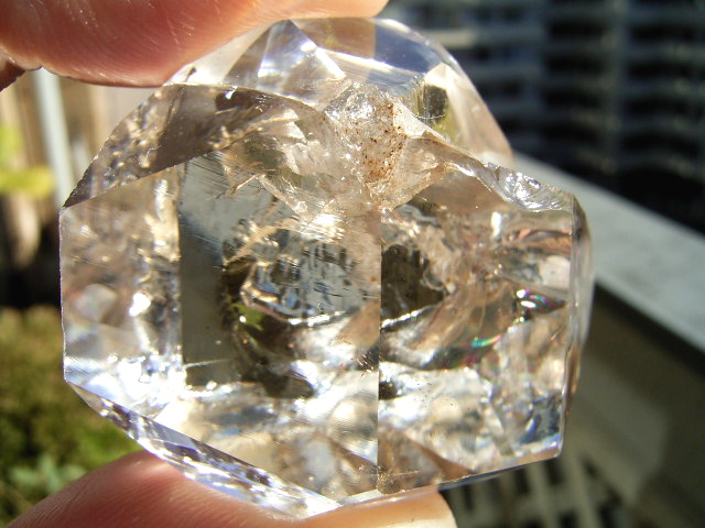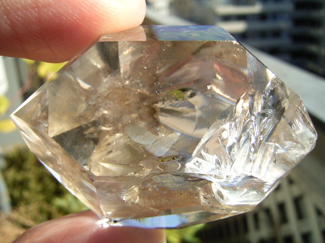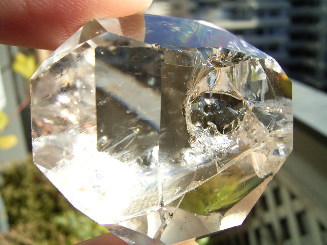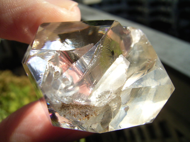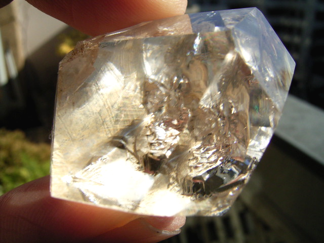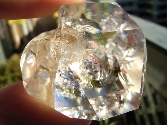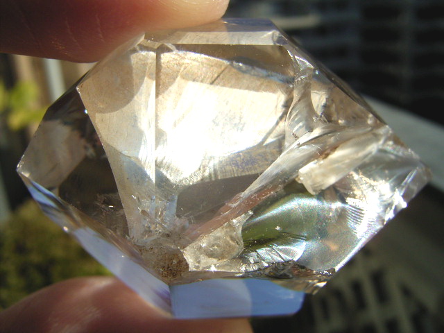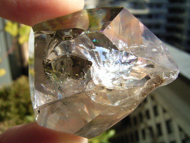 とがった先端のファセット面の奥に、大きく鏡面になった虹ヴェールがあります。