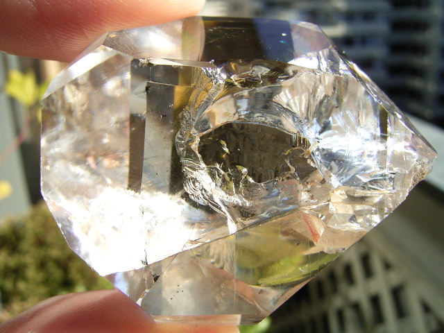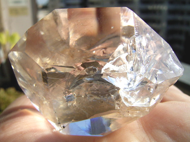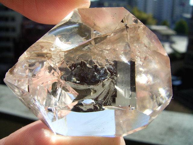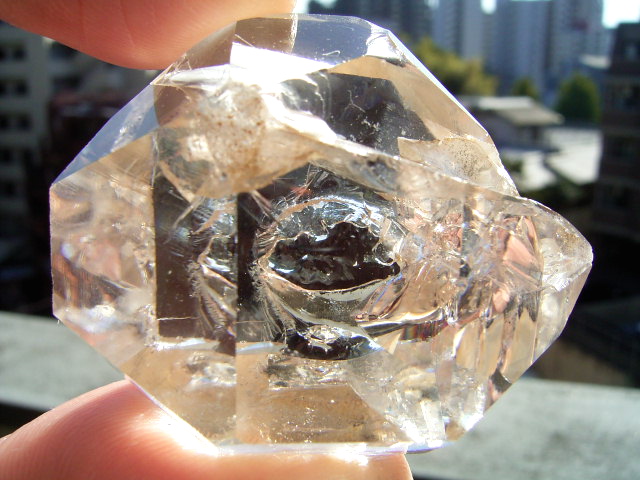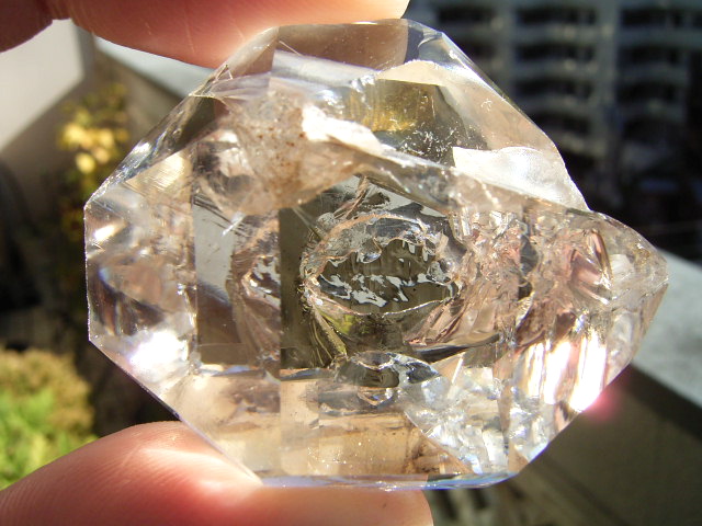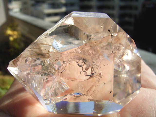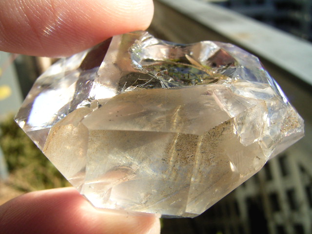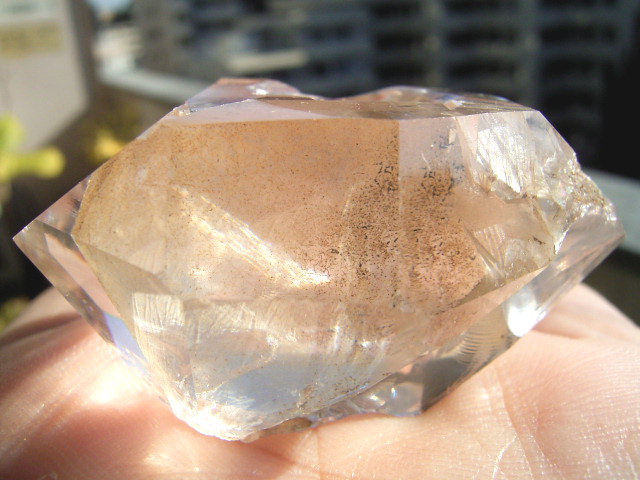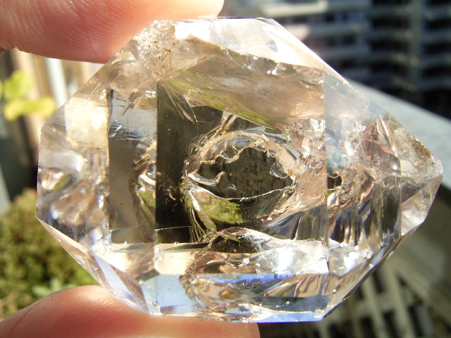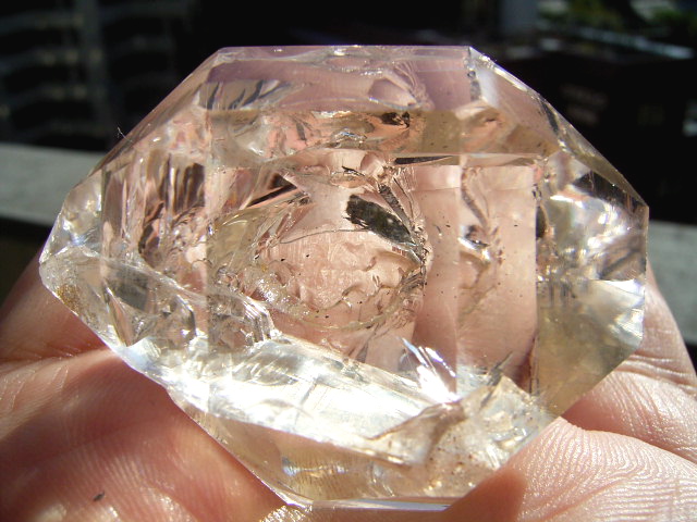 結晶ヨコのクリアな方に、淡い煙幻影のヴェールがうっすら。