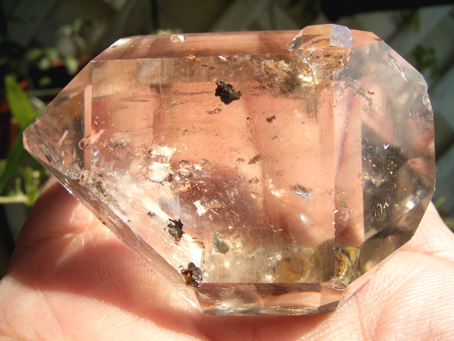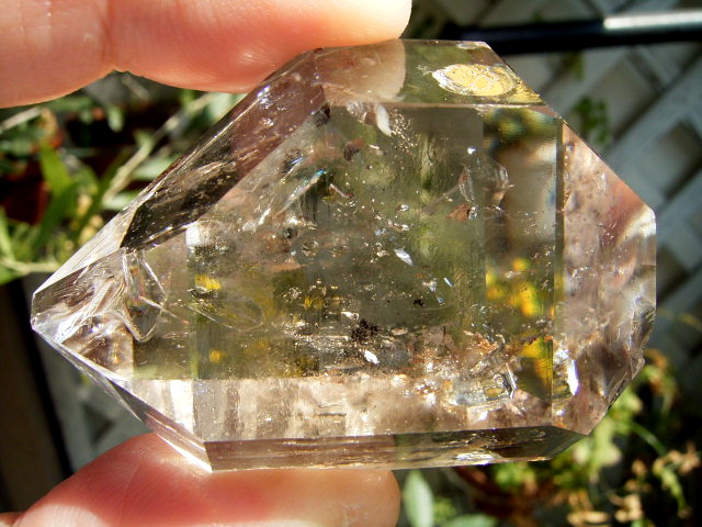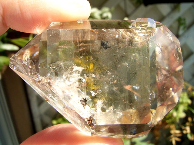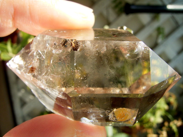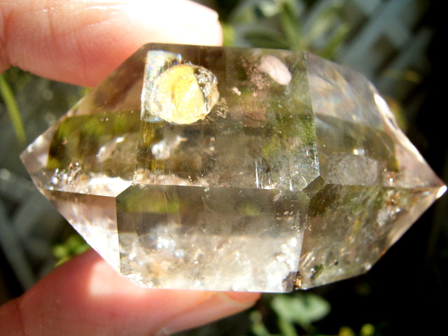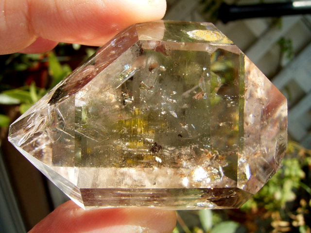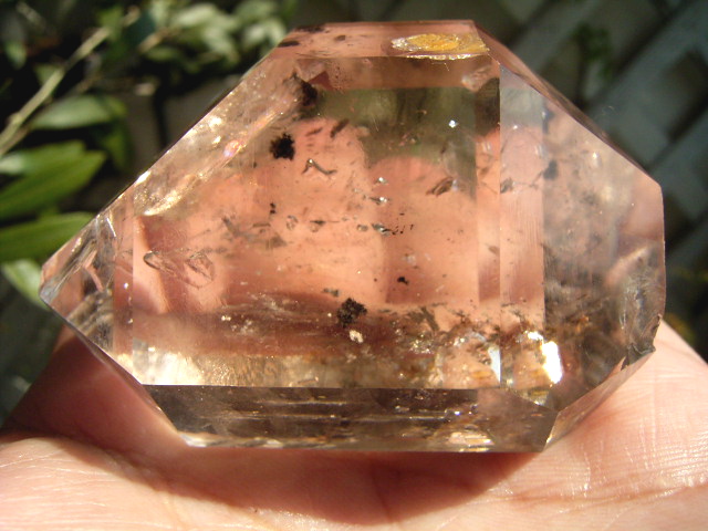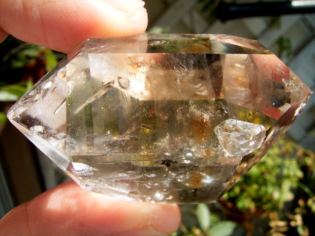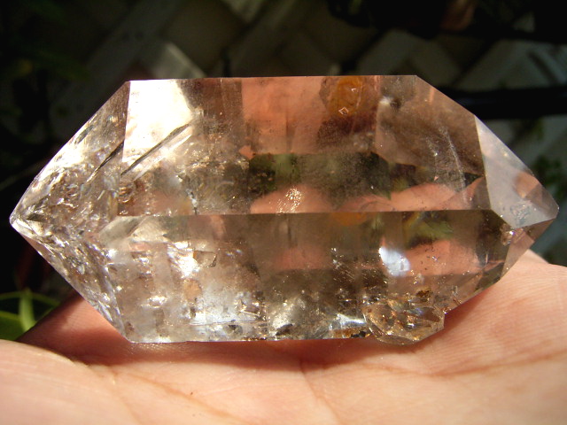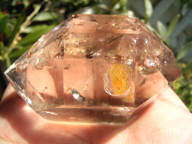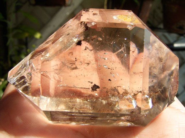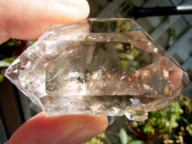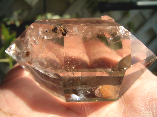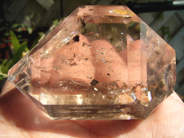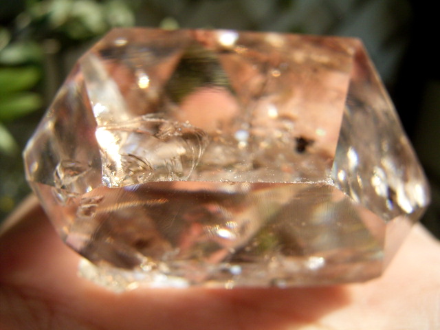 反対側のヨコのファセット面表面下に、5mmほどの△気泡があって、その中で1mmほどの気泡がキョロキョロ動く可愛い「水入り」になっています。