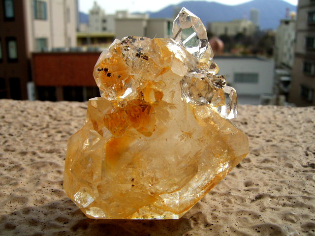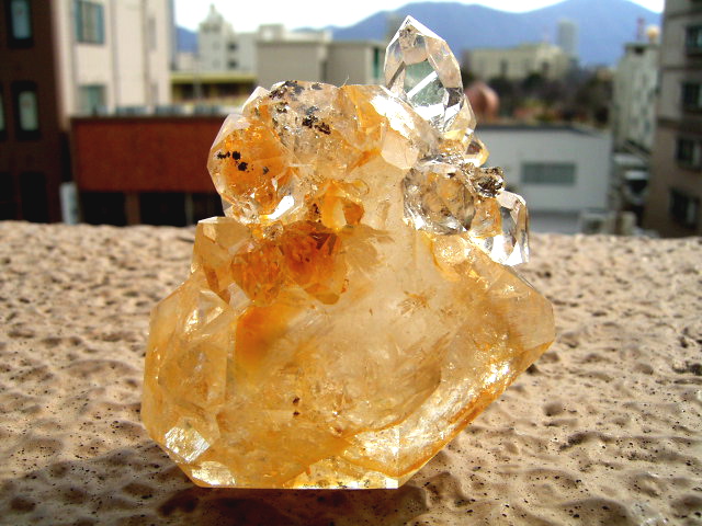 黄金水晶の色合いと、形のまとまった超ボリューム極美形バランス、極美クラスター。