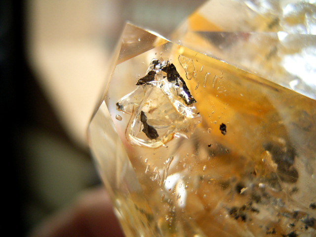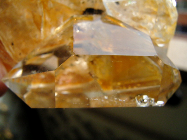 55mm結晶の、ファセット面のエッジの下に、重なる△気泡のエレスチャルの窓があります。