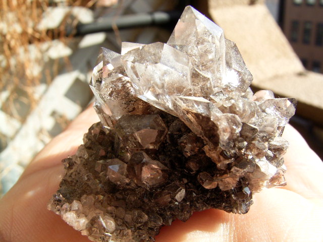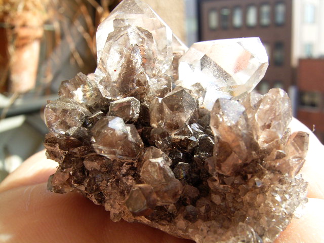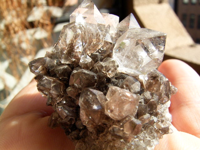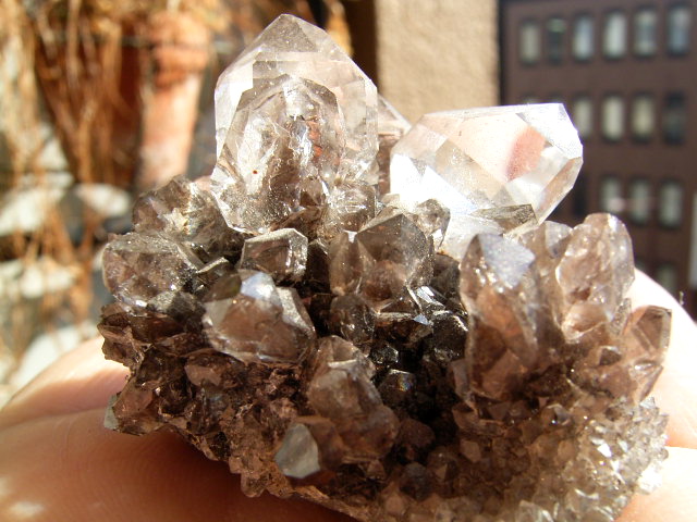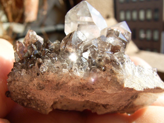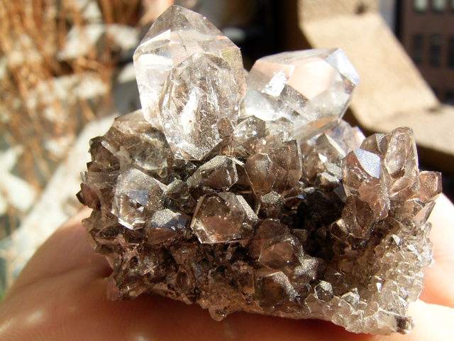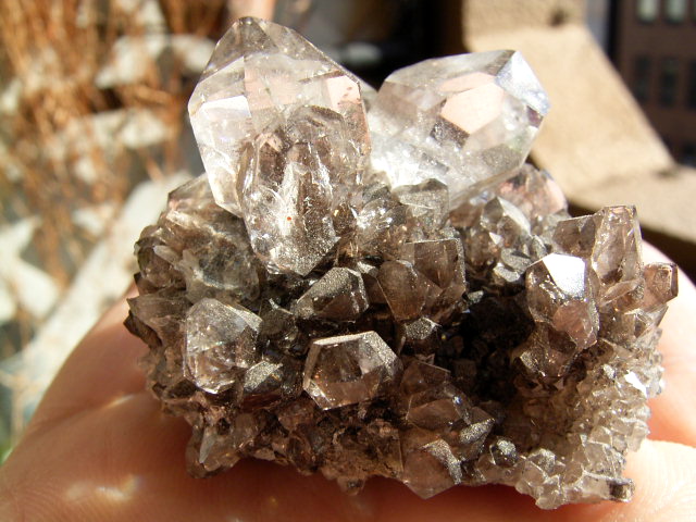 形成は、ハーキマーの母岩(マトリックス)自体が晶洞となって、その先端に出来た結晶の集まりです。