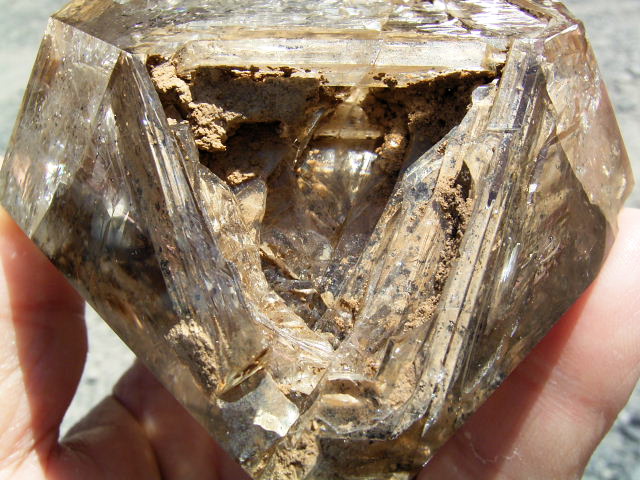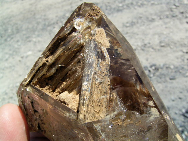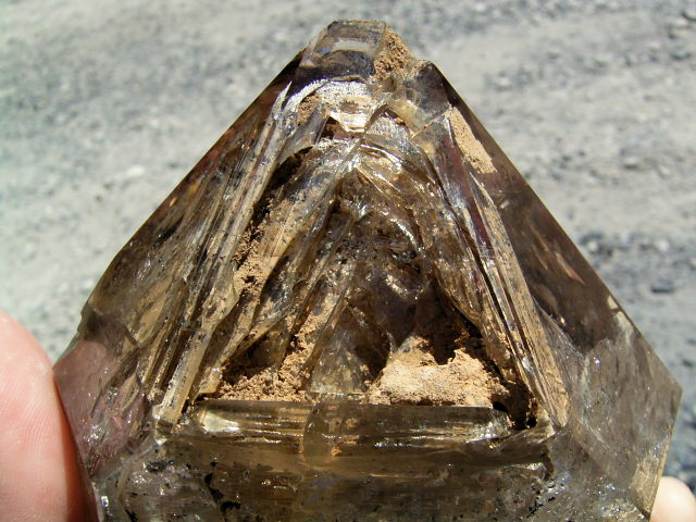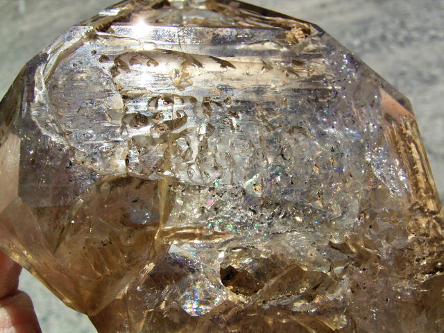 多重△の開口部にハーキマーの泥がついていて、ウラ面は毋岩干渉&エレスチャルレリーフが自己修復。※これも見どころ。