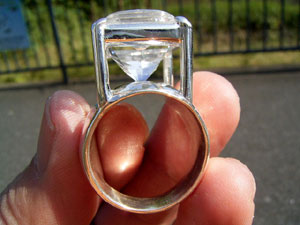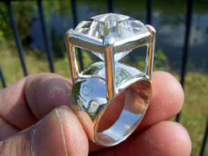 ◆ハーキマーのルースをより綺麗に見せるためにデザインした、まるで展示台のような迫力のリングです。