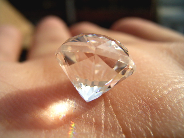結晶の内側の面に光が集まって、プリズム効果とも相まって、虹のような反射が綺麗です。